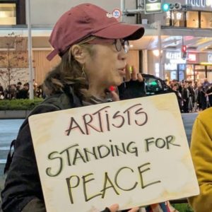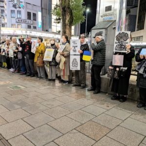 マイクを握るでもなく、多くの人に呼びかけるでもなく、静かにご自身の作品を手に街角に立たれた小西先生のご遺志を継ぎ、もう10年以上、毎月9日にご自身の作品を手に静かに四条河原町の街角に立ち続けてらっしゃる作家の皆さんがいらっしゃいます。