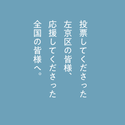 投票してくださった左京区の皆様、応援してくださった全国の皆様へ。
