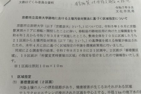報道もされていますが、京都市立芸大跡地で基準値を上回る有害物質テトラクロロエチレン(…